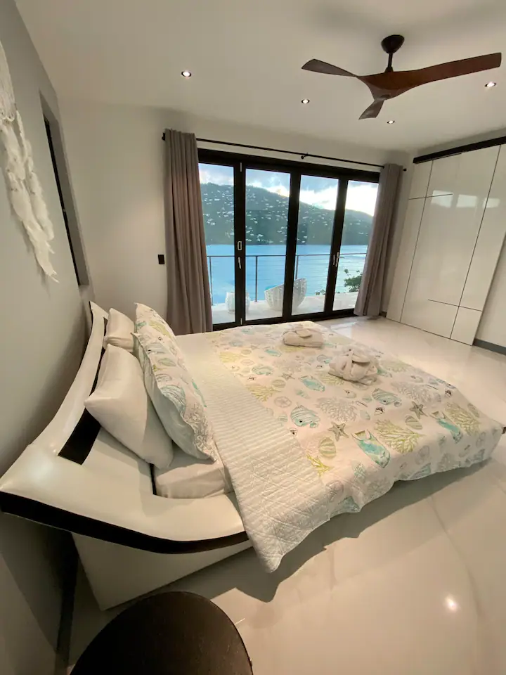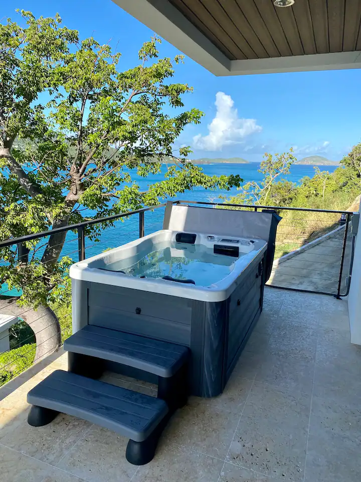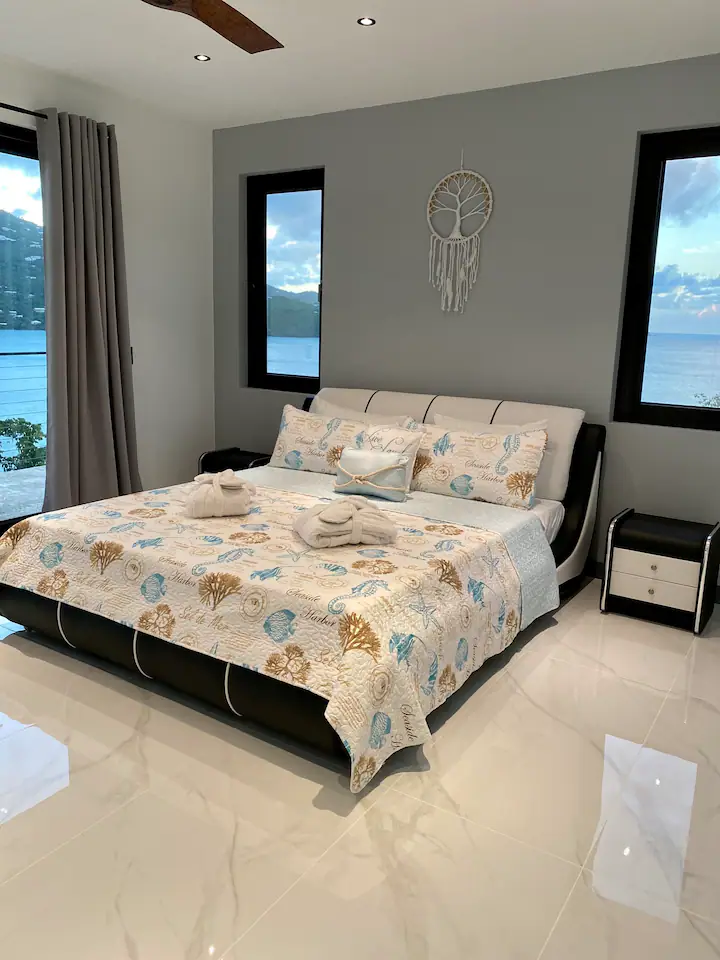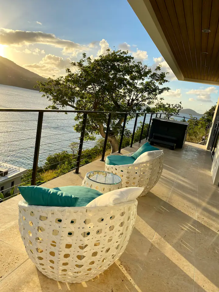 This new waterfront villa is conveniently located steps away from the Platform beach and 5 min. drive to famous Magens Bay Beach. Enjoy morning coffee watching turtles or Eagle rays flying above the turquoise water right from your balcony. This extraordinary furnishing and modern feel will provide cozy and exceptional vacation for your family and friends. The outdoor space offers great relaxing area overlooking the Caribbean sea. Hot tub brings the resort feel with the privacy you deserve.