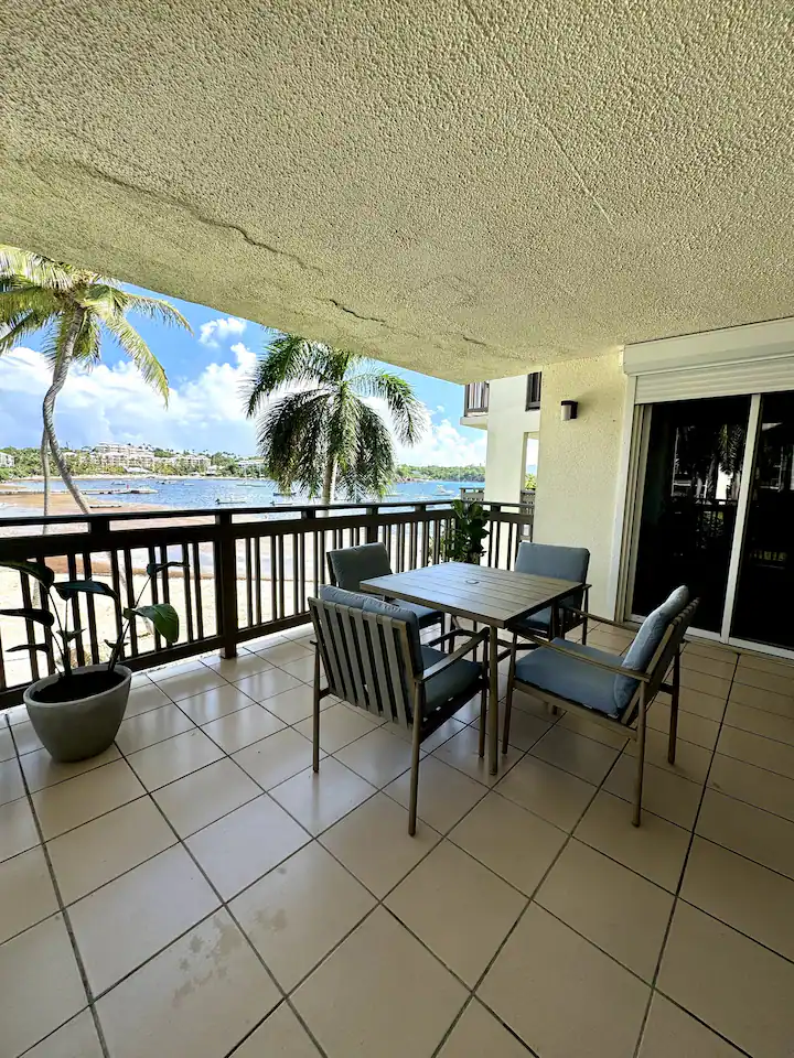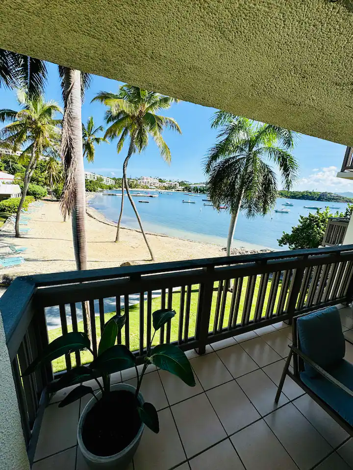 This truly peaceful beachfront 2-bedroom, 2-bath property, situated just above the beach as the balcony sits right above the white Caribbean sand. The condo is located in gated community just 5 min. to Red Hook city center. As the property is overlooking St. Thomas Yacht club you can watch sailors and boats come and go from the bay. Beach offers complimentary lounging chairs, the aquamarine water invites you to take a refreshing dip or relax and soak up some Virgin Islands sunshine. We invite you to spacious swimming pool, where you can enjoy the views of Caribbean Sea. As the condo is next to the world-famous St. Thomas Yacht Club, you can take advantage of sailing classes, renting a hobby or just come and enjoy the incredible dining experience at the Galley, which is St. Thomas Yacht club restaurant that offers tasty lunch and dining option.