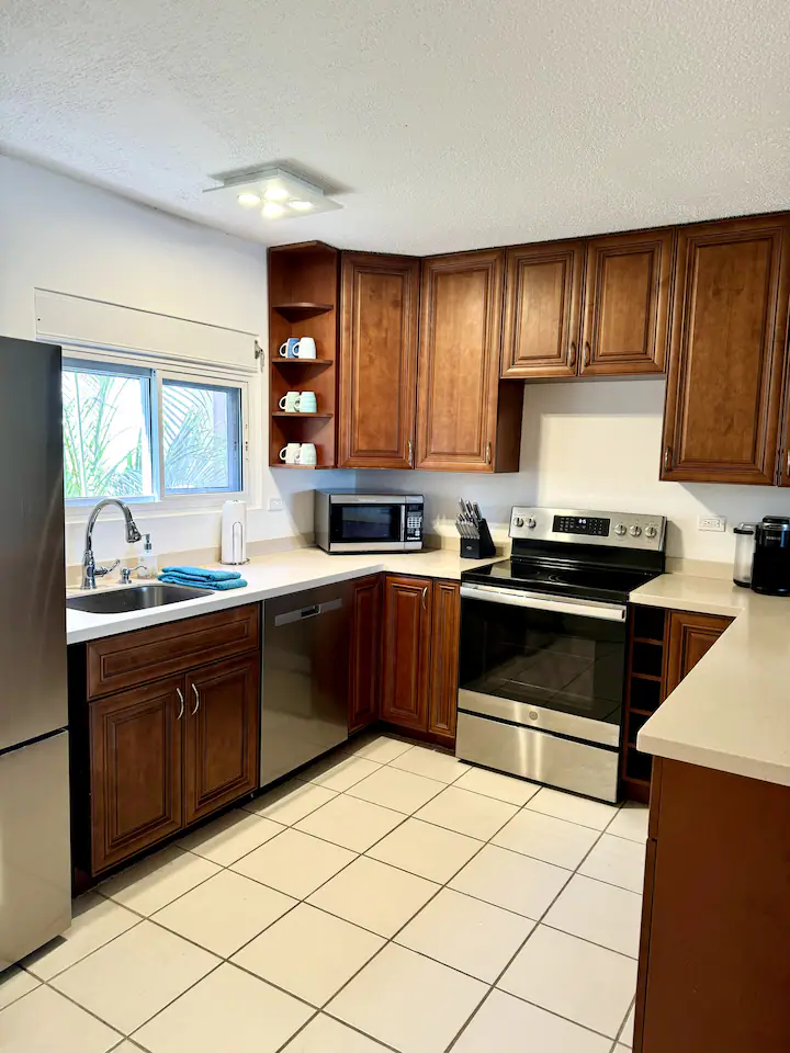 Leave worries at home and enjoy the bathroom essentials provided, including a hair dryer, soap, shampoo, and conditioner. Two stocked bathrooms plus the in-unit washer and dryer mean you’ll be refreshed and ready for the day’s adventure.